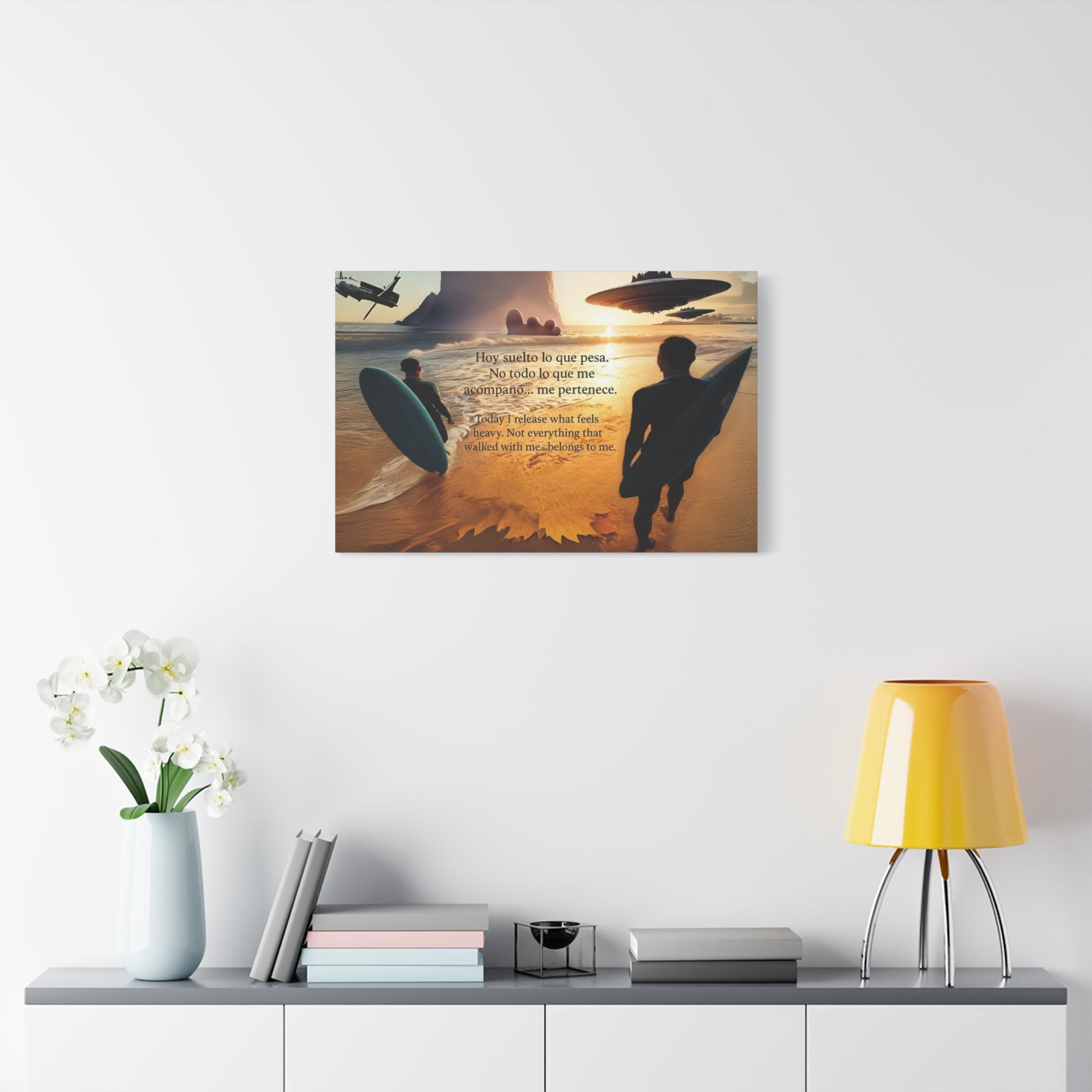 "OVNIS IN THE BEACH" Inspirational Wall Art, Motivational Canvas Print, Beach Vibe Decor, Surfing Home Art, Positive Affirmation Canvas