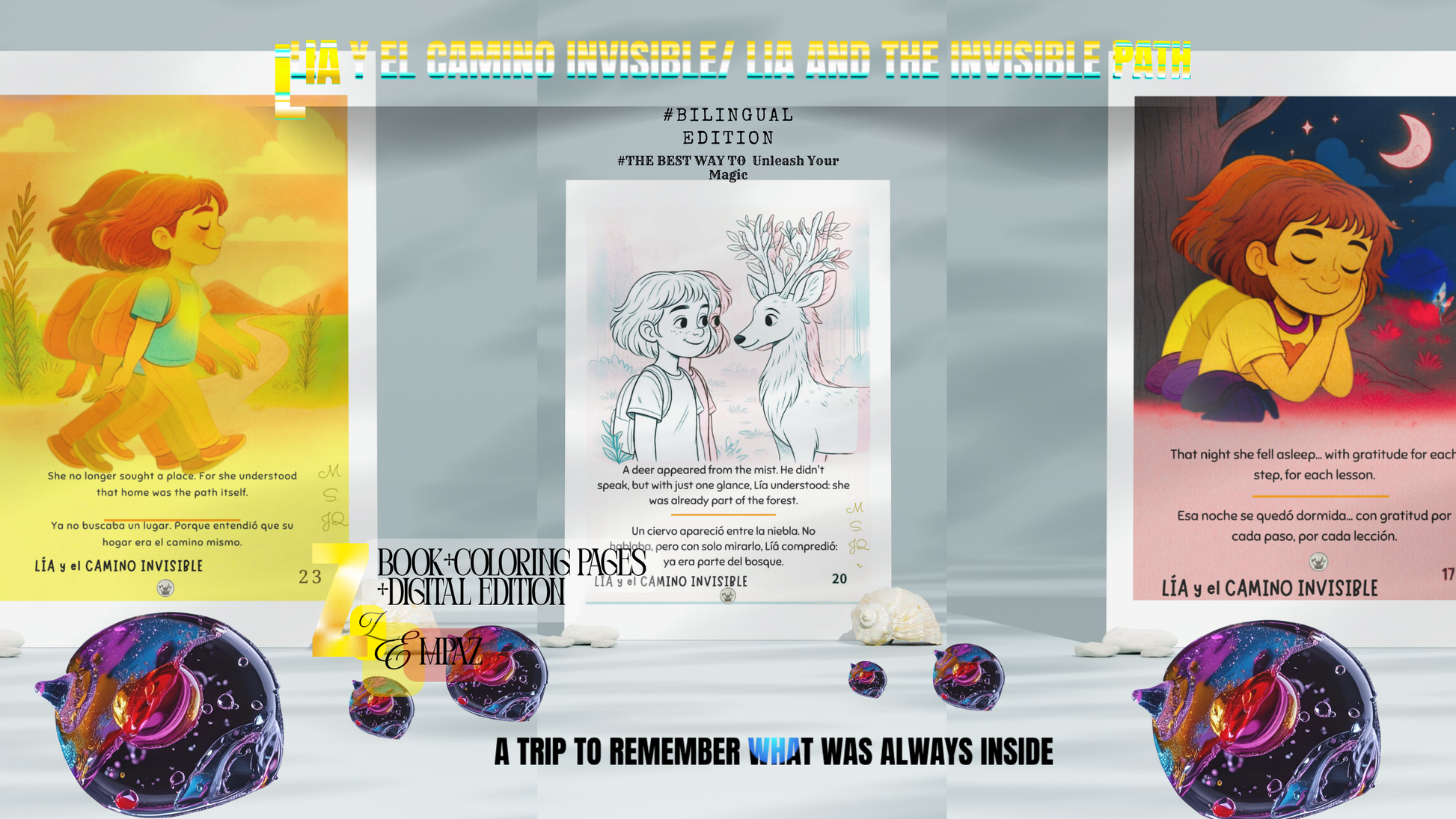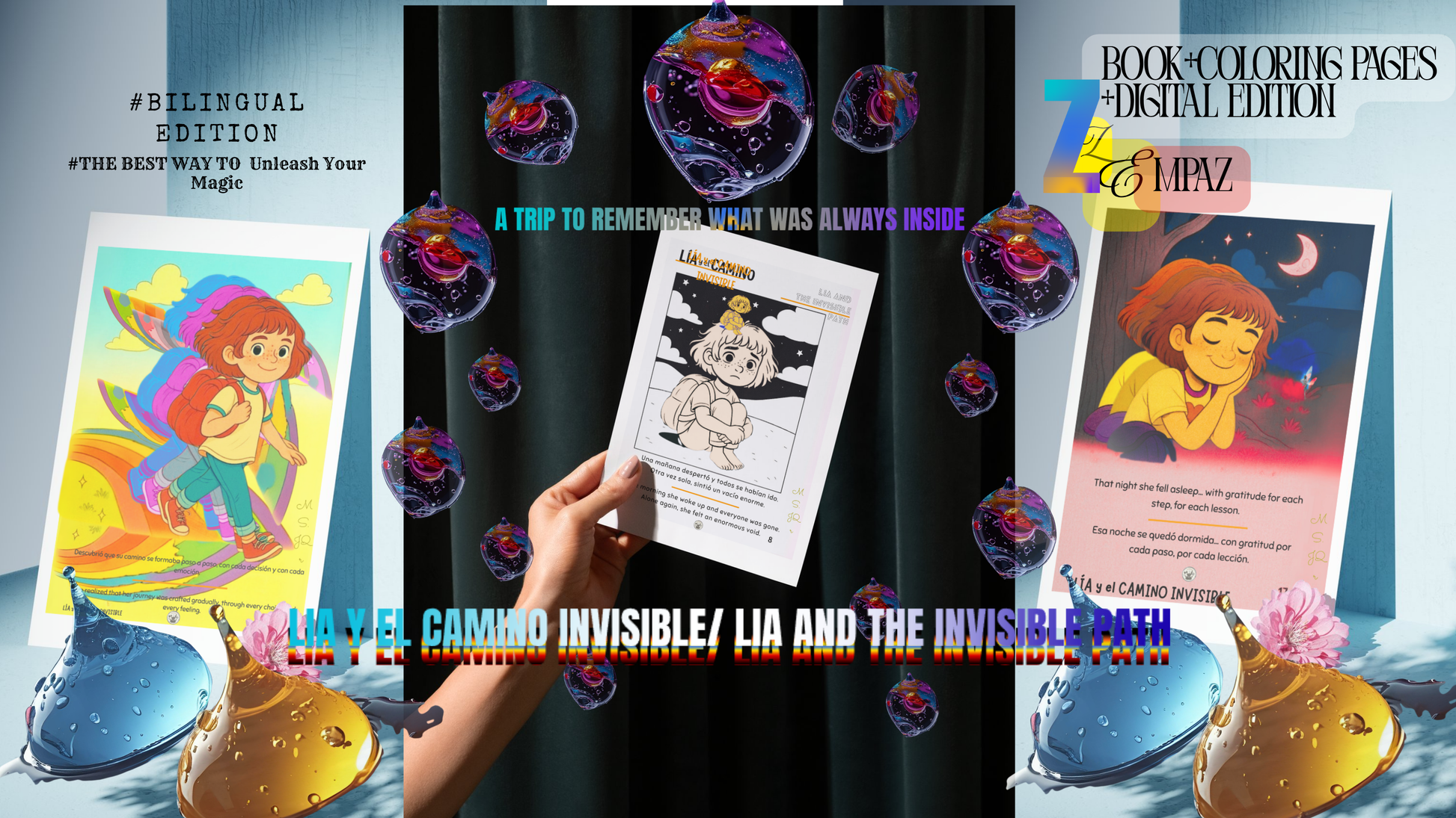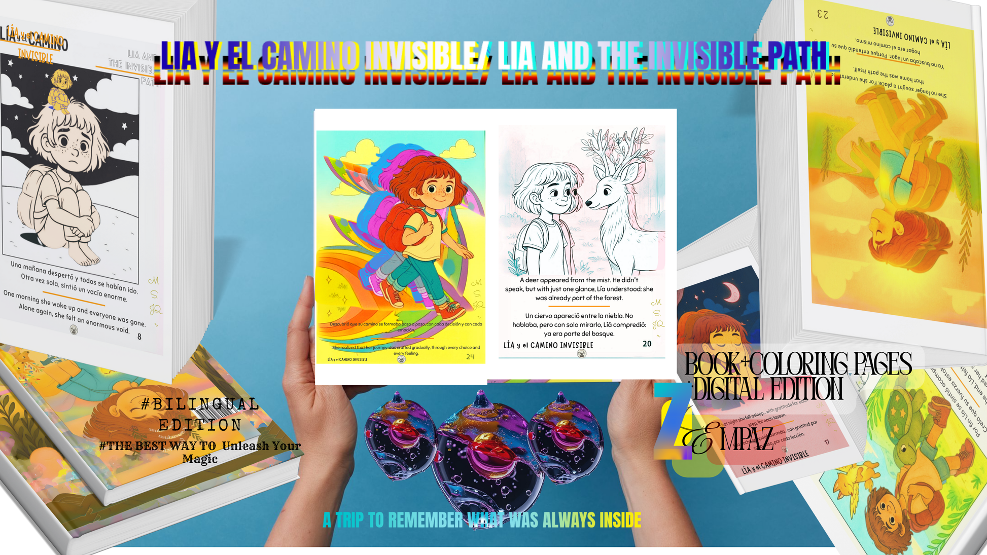 Lia and the Invisible Path” is an introspective coloring book with a symbolic story for children, teens, and adults who seek creativity, mindfulness, and a deeper connection with themselves. Follow Lia, a curious and brave girl, on a magical journey where she meets extraordinary creatures and discovers that her strength has always been within her. With hand-drawn black-and-white illustrations ready to color and uplifting phrases in both English and Spanish, this book invites you to slow down, breathe, and remember what truly matters. Perfect for creative moments alone, as a mindful activity with family, or as a meaningful gift for someone special.