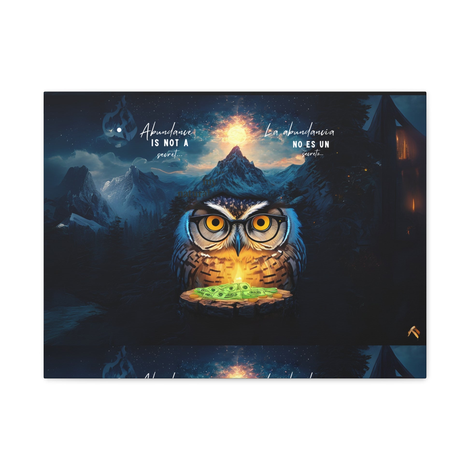 This surreal canvas features a luminous owl with piercing eyes, mountains in the background, and a cosmic glow that reminds us: abundance is not a secret. Ideal for meditation rooms, offices, or living spaces, this artwork serves as both decoration and affirmation—a daily reminder of clarity, strength, and prosperity. Printed on high-quality canvas for a premium finish.